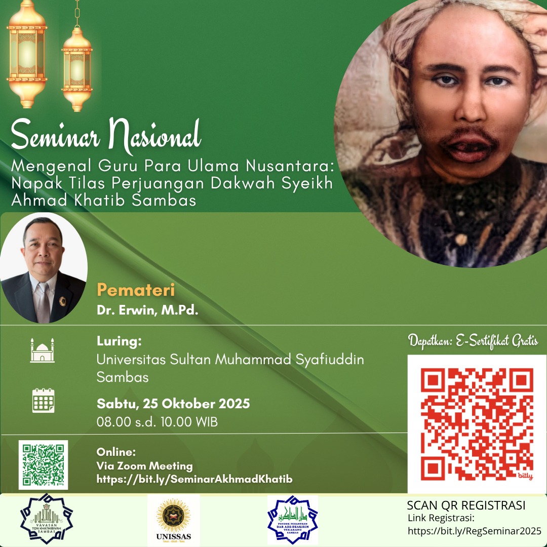 SAMBAS – Jejak perjuangan ulama Nusantara kembali dihadirkan ke ruang publik melalui Seminar Nasional Mengenal Guru Para Ulama Nusantara: Napak Tilas Perjuangan Dakwah Syekh Ahmad Khatib Sambas yang digelar pada Sabtu (25/10/2025). Seminar ini menghadirkan Dr. Erwin Mahrus, M.Ag., akademisi dan sejarawan pendidikan Islam, sebagai narasumber utama.